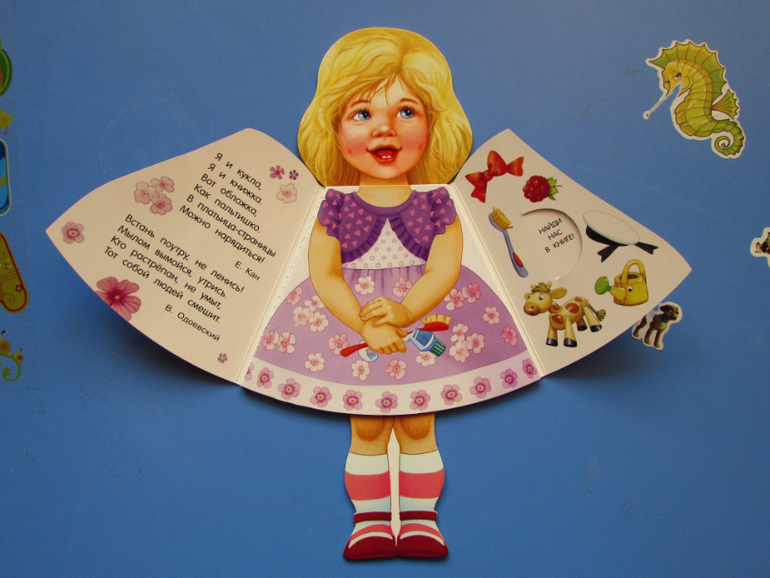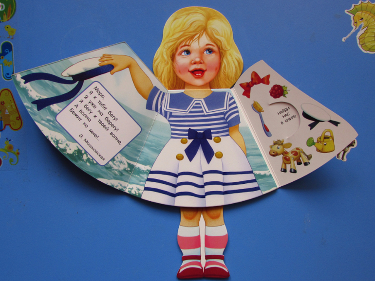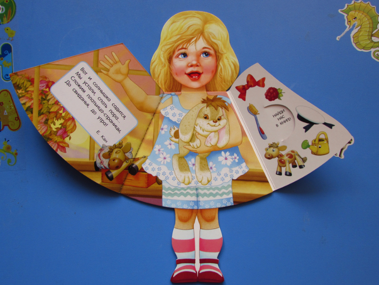 Обложка (пальто) закрывается на бумажный клапан. Малышне это просто нравится, а я как мама говорю что это полезное упражнение для мелкой моторики.