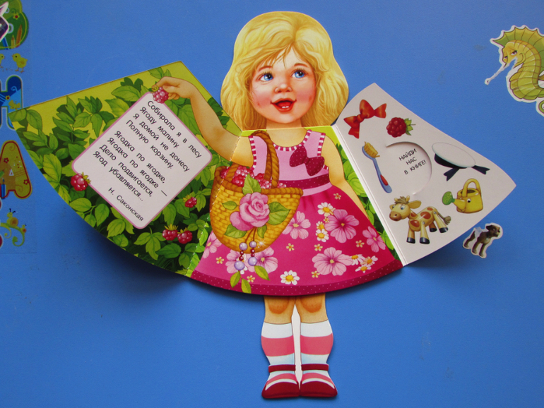 Кроме того в книжке предлагается найти вещи (бантик, ягодка, лейка и т.д.).